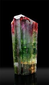 – Turmalin arbuzowy – zielony na zewnątrz, różowy w środku – efekt różnic składu w czasie wzrostu kryształu