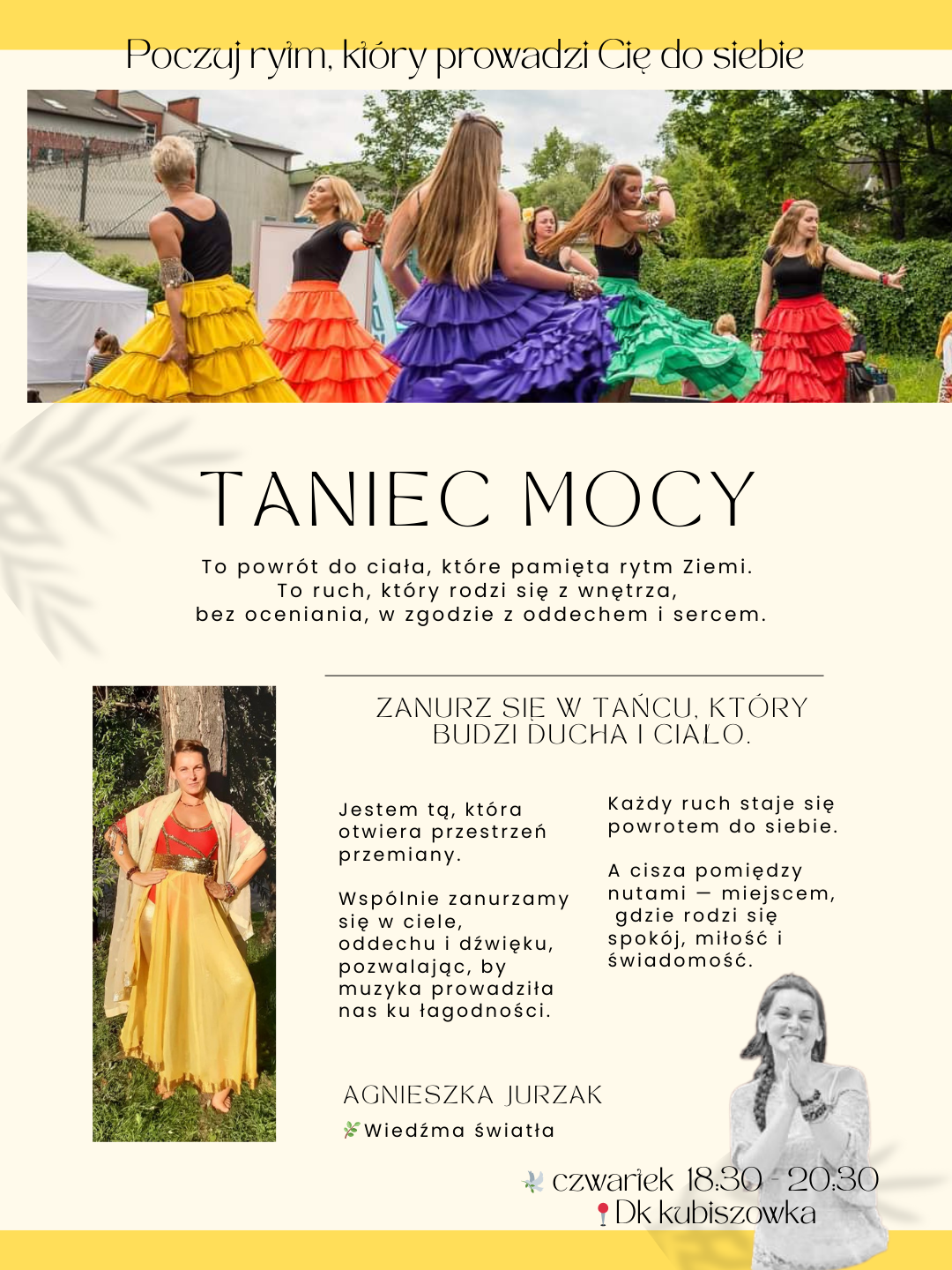 Zajęcia, podczas których łączymy taniec intuicyjny, ekspresję, oddech i energię. To przestrzeń uwalniania emocji, wyrażania siebie i powrotu do swojej wewnętrznej siły. Rezonuje szczególnie z kobietami, które pragną odzyskać lekkość, kobiecość i przepływ.