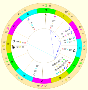 - Mars – 26° Koziorożca (koniunkcja Merkury–Mars)