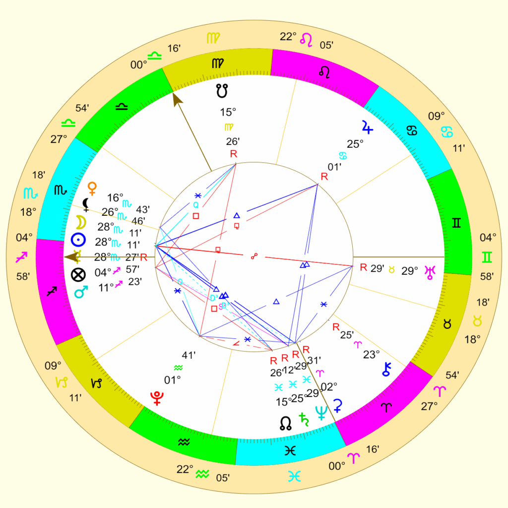 W tym samym stopniu, 29°, stoi Neptun, tworząc z Uranem sekstyl.